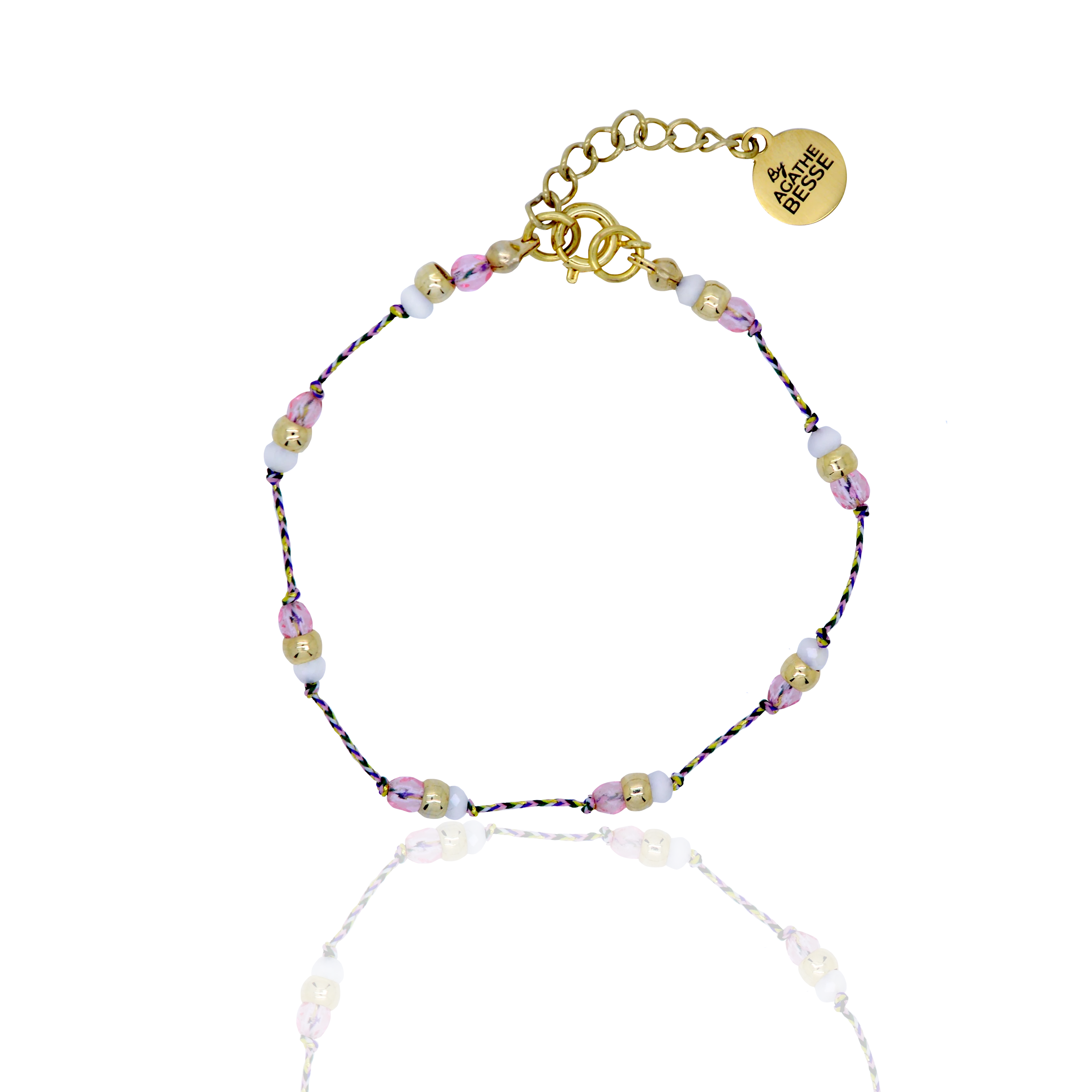 Bracelet sur un cordon en lurex agrémenté de petites perles en amethyste ou en agate. Le côté “boheme chic” du jour.