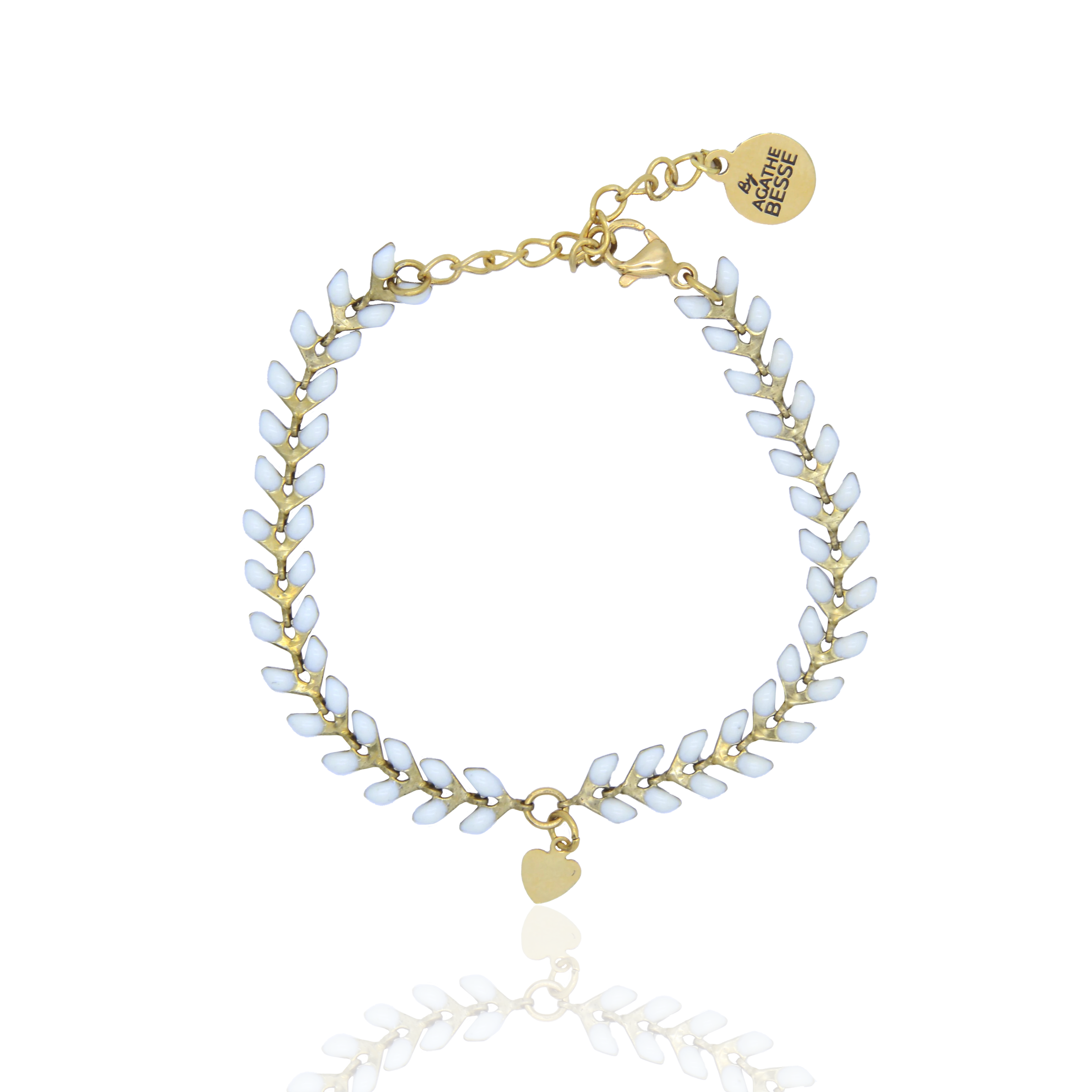 Les magnifiques petits lauriers jonchant ce bracelet-chaine en acier apporteront la touche de sophistication et d’élégance à votre look.