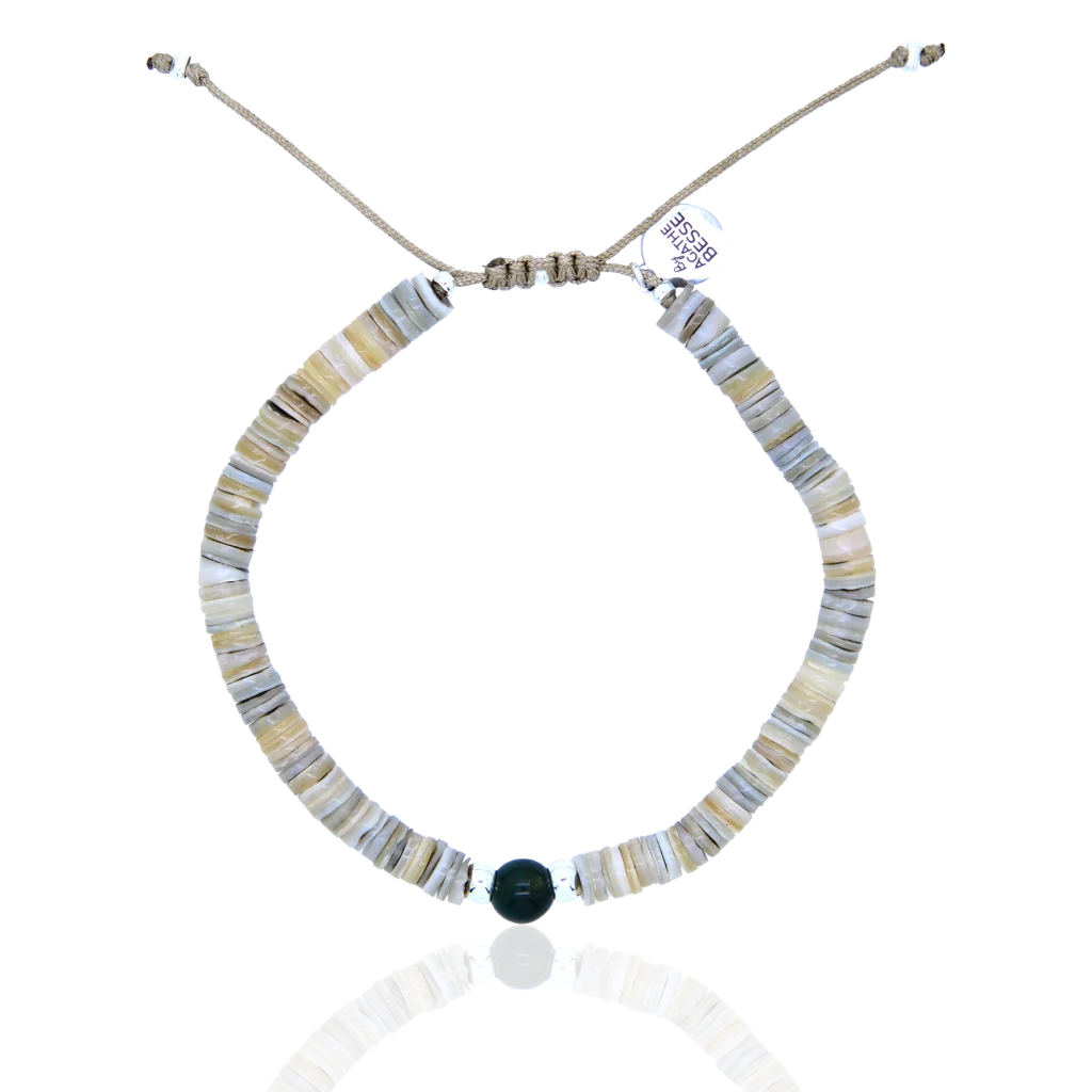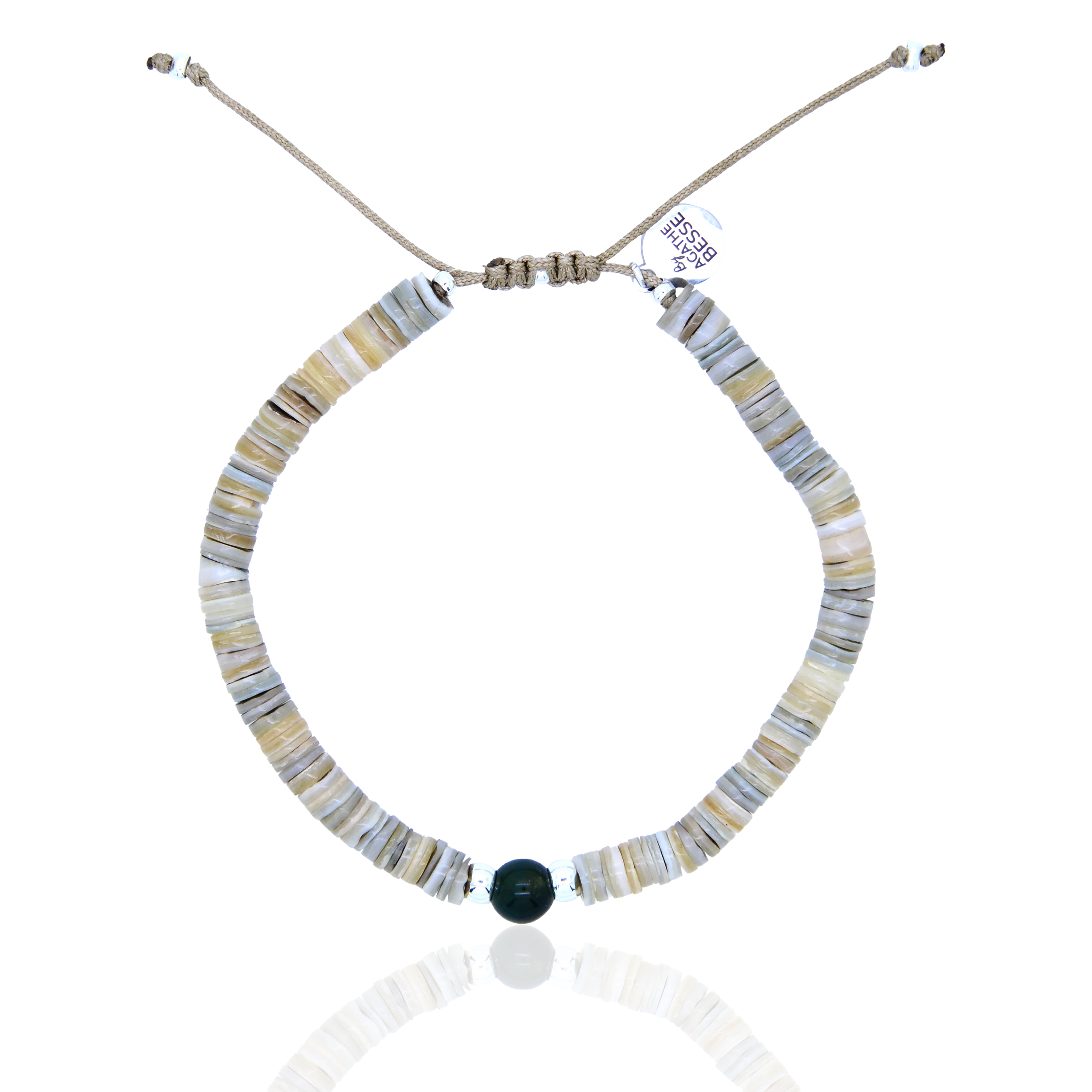 Ce bracelet en perles de coquillage et de perles en agate peut être porté seul pour un look décontracté ou associé à d’autres bracelets pour un style plus audacieux. Messieurs, osez le “mix and match”!!!!