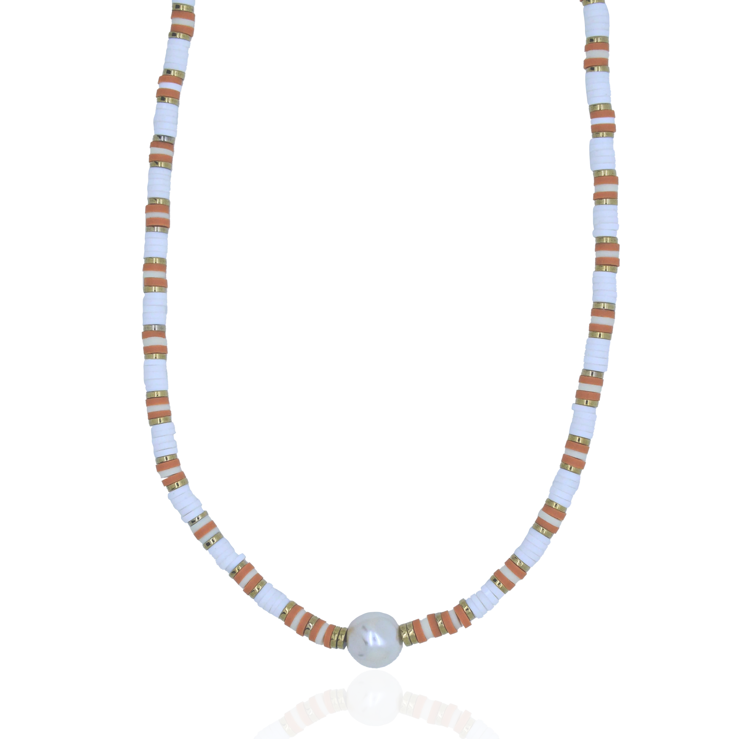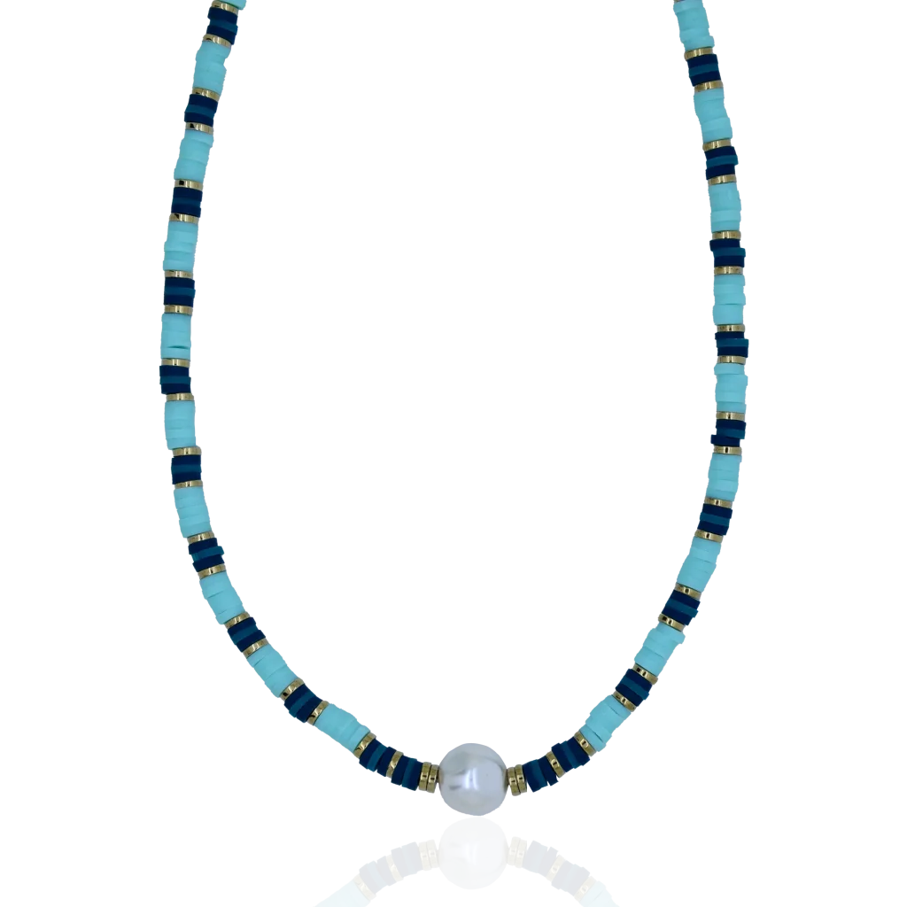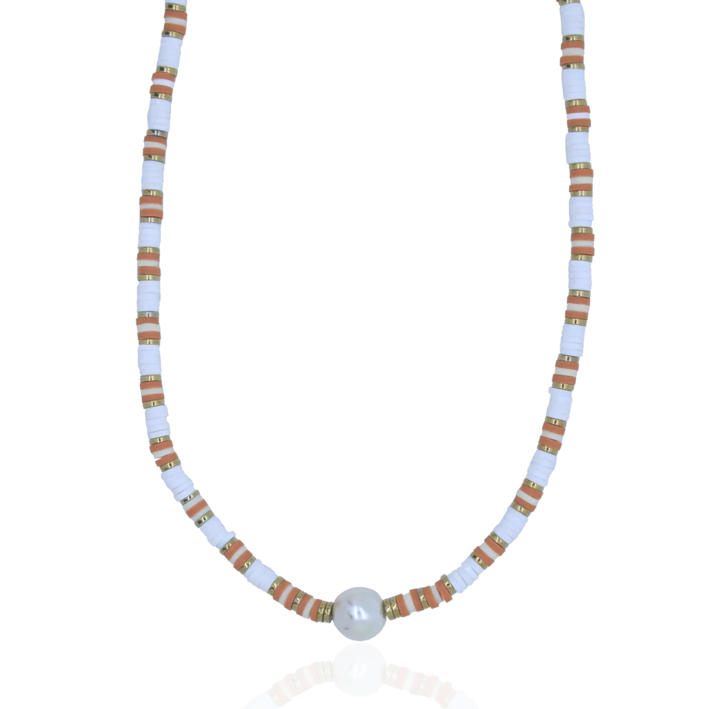 Que ce soit pour une journée à la plage ou pour une soirée entre amis, ce collier composé de perles heishi et d’une magnifique perle de riviEre ajoutera une touche de fraîcheur et d’originalité à votre tenue.