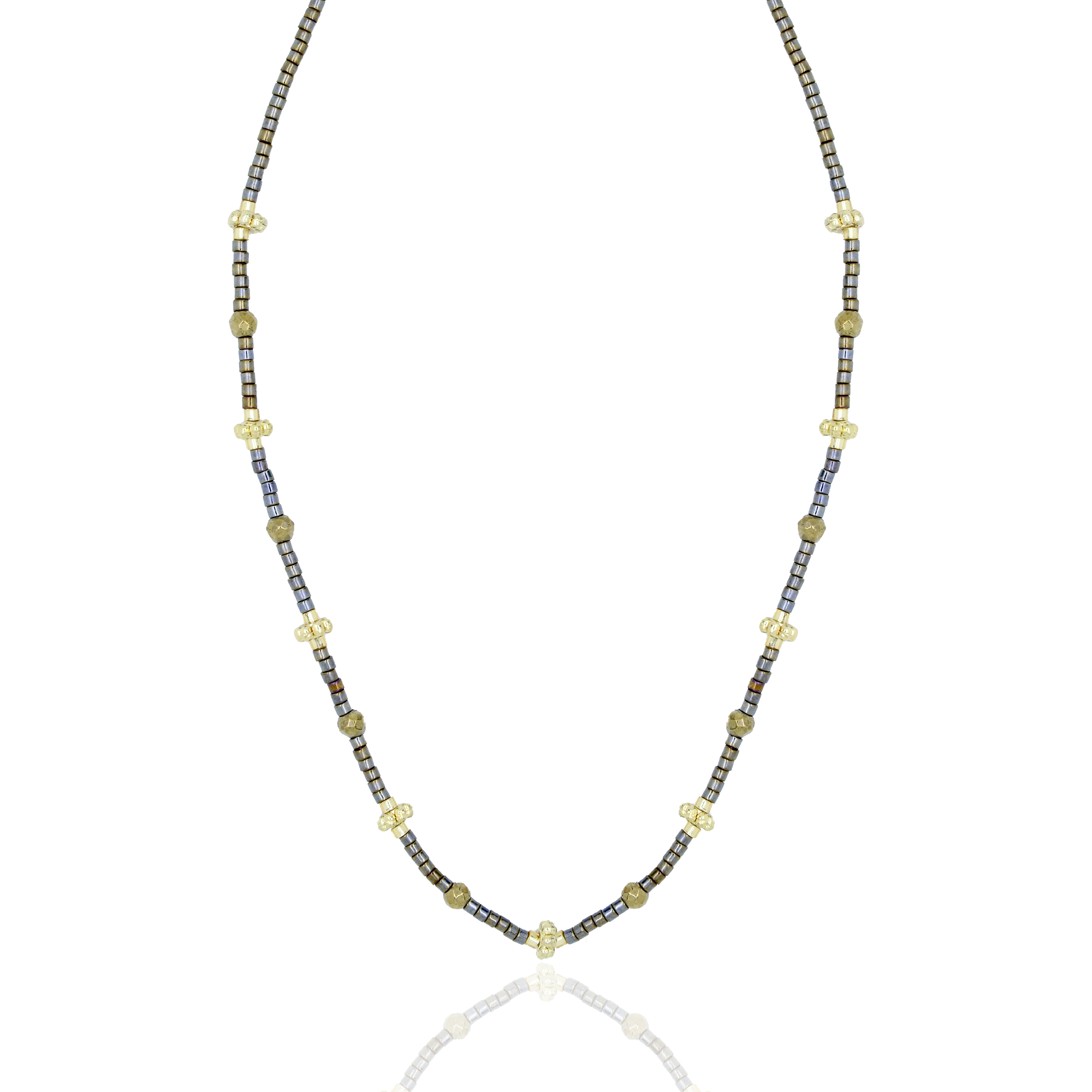 Collier en perles miyuki et en perles en hematite. Tout en finesse pour parfaire votre élégance.